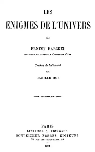 The Riddle of the Universe at the close of the nineteenth century