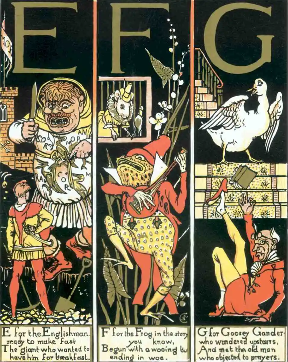 E for the Englishman, ready to make fast The giant who wanted to have him for breakfast. |