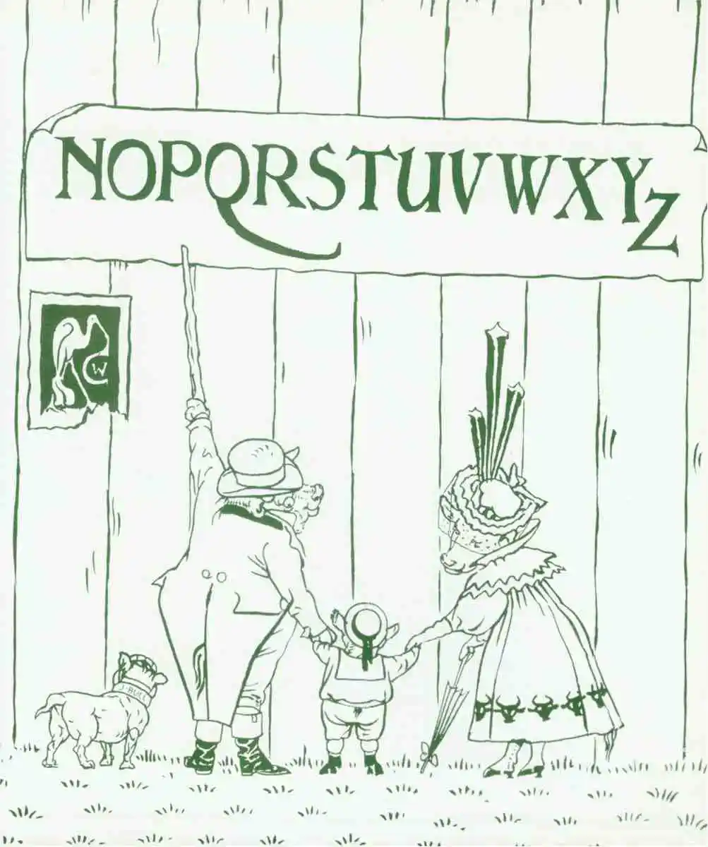 D for the DAME with her pig at the stile, 'Tis said they got over, but not yet a while. |
