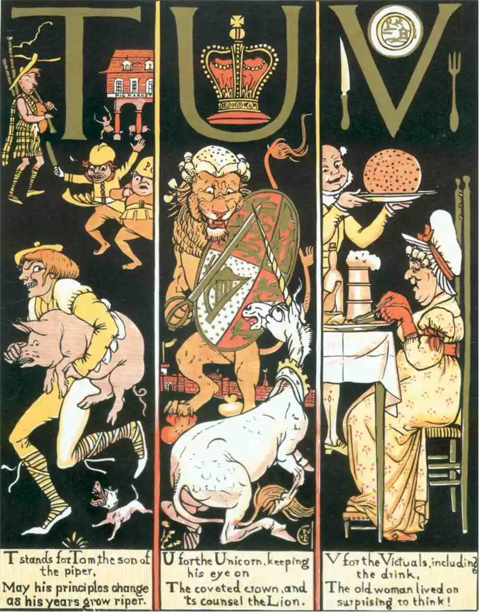 U for the Unicorn, keeping his eye on The coveted crown, and 'ts counsel the Lion. |