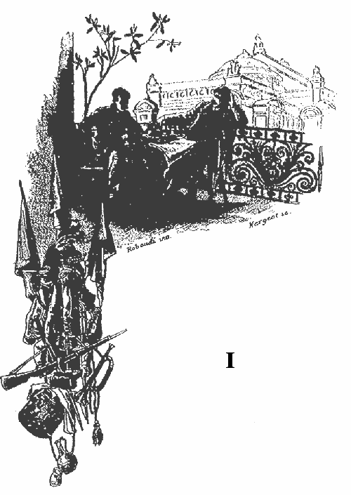 Sur le balcon du Cercle des Armées de Terre et de Mer, en achevant leur café, ils causaient, se retrouvant là après des mois et des mois, des mois d'exil, de maladie, de batailles, de blessures. En tête-à-tête, dans le délicieux bavardage du premier cigare, après le café, les deux camarades souriaient, évoquant les années enfuies, les souvenirs de l'École, les promenades militaires, les jours de sortie, d'examen ou d'escapade, et la première épaulette et la dernière revue, la revue d'hier, à Longchamps, devant les tribunes, ce défilé des Tonkinois sous les acclamations d'une foule, les sourires des mères, les bravos des anciens, les larmes des femmes.