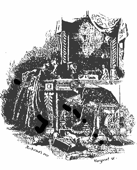 Et je montrais, sur le marbre de la cheminée, la place même où le Bouddha avait roulé—comme, là-bas, la tête de Mohammed.