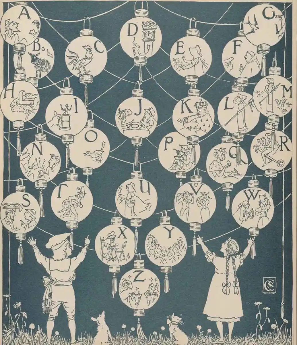 Even princesses cannot do without Alphabets, and so in her train comes AN ALPHABET in which will be discovered many OLD and tried FRIENDS of the Nursery.