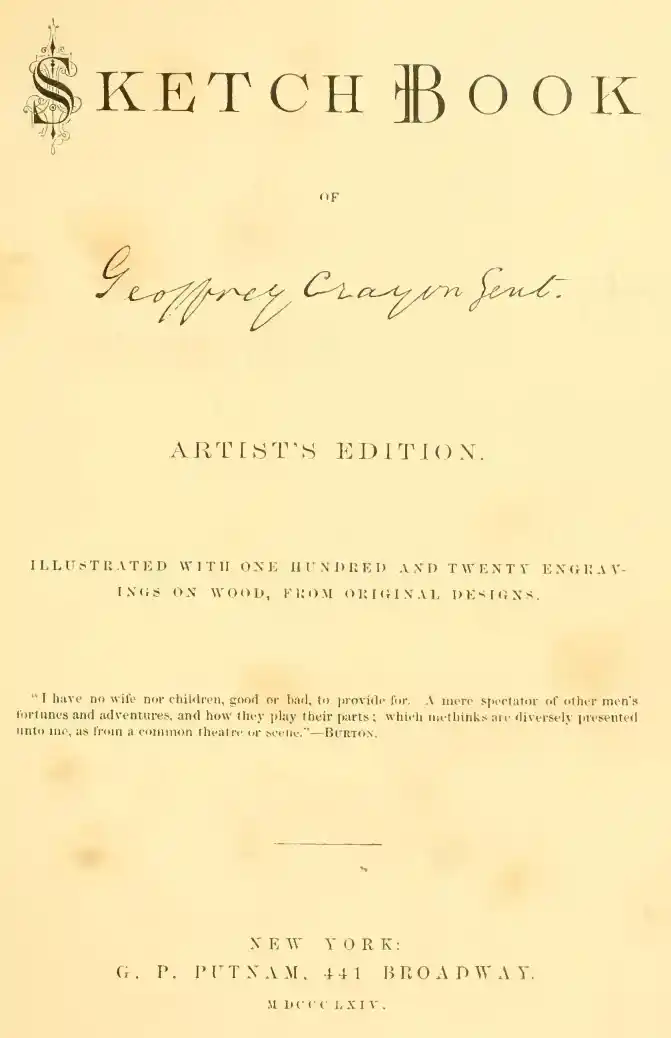 It has been either my good or evil lot to have my roving passion gratified. I have wandered through different countries and witnessed many of the shifting scenes of life. I cannot say that I have studied them with the eye of a philosopher, but rather with the sauntering gaze with which humble lovers of the picturesque stroll from the window of one print-shop to another; caught sometimes by the delineations of beauty, sometimes by the distortions of caricature, and sometimes by the loveliness of landscape. As it is the fashion for modern tourists to travel pencil in hand, and bring home their portfolios filled with sketches, I am disposed to get up a few for the entertainment of my friends. When, however, I look over the hints and memorandums I have taken down for the purpose, my heart almost fails me, at finding how my idle humor has led me astray from the great object studied by every regular traveller who would make a book. I fear I shall give equal disappointment with an unlucky landscape-painter, who had travelled on the Continent, but following the bent of his vagrant inclination, had sketched in nooks, and corners, and by-places. His sketch-book was accordingly crowded with cottages, and landscapes, and obscure ruins; but he had neglected to paint St. Peter’s, or the Coliseum, the cascade of Terni, or the bay of Naples, and had not a single glacier or volcano in his whole collection.