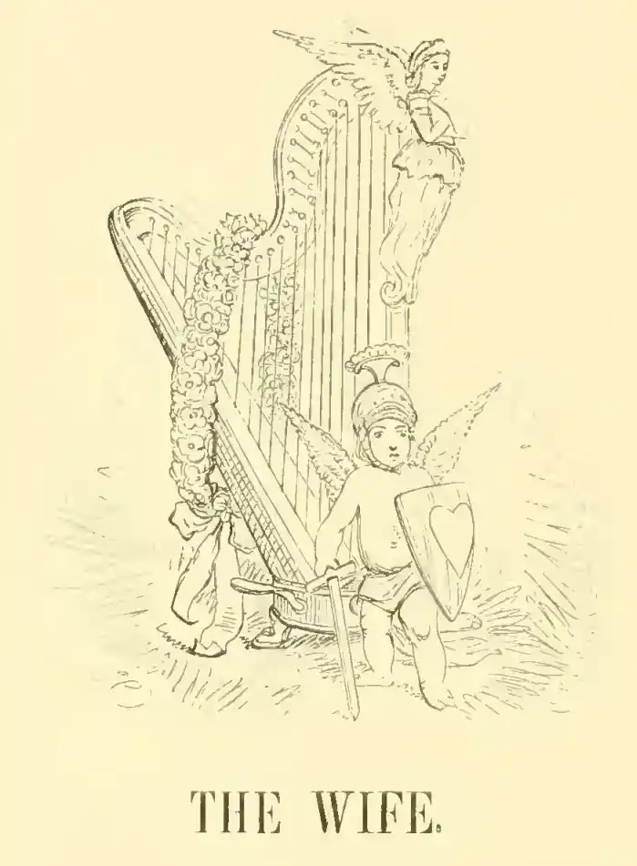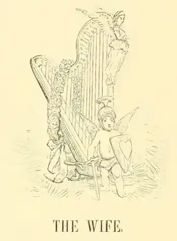 Some days afterwards, he called upon me in the evening. He had disposed of his dwelling-house, and taken a small cottage in the country, a few miles from town. He had been busied all day in sending out furniture. The new establishment required few articles, and those of the simplest kind. All the splendid furniture of his late residence had been sold, excepting his wife’s harp. That, he said, was too closely associated with the idea of herself it belonged to the little story of their loves; for some of the sweetest moments of their courtship were those when he had leaned over that instrument, and listened to the melting tones of her voice.—I could not but smile at this instance of romantic gallantry in a doating husband.