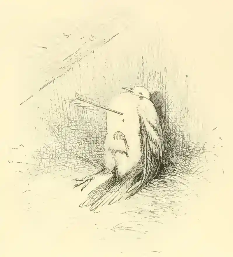 The small birds were taking their farewell banquets. In the fulness of their revelry they fluttered, chirping and frolicking, from bush to bush and tree to tree, capricious from the very profusion and variety around them. There was the honest cock robin, the favorite game of stripling sportsmen, with its loud querulous note; and the twittering blackbirds, flying in sable clouds; and the golden-winged woodpecker, with his crimson crest, his broad black gorget, and splendid plumage; and the cedar-bird, with its red-tipt wings and yellow-tipt tail and its little monteiro cap of feathers; and the blue jay, that noisy coxcomb, in his gay light-blue coat and white under-clothes, screaming and chattering, bobbing and nodding and bowing, and pretending to be on good terms with every songster of the grove.