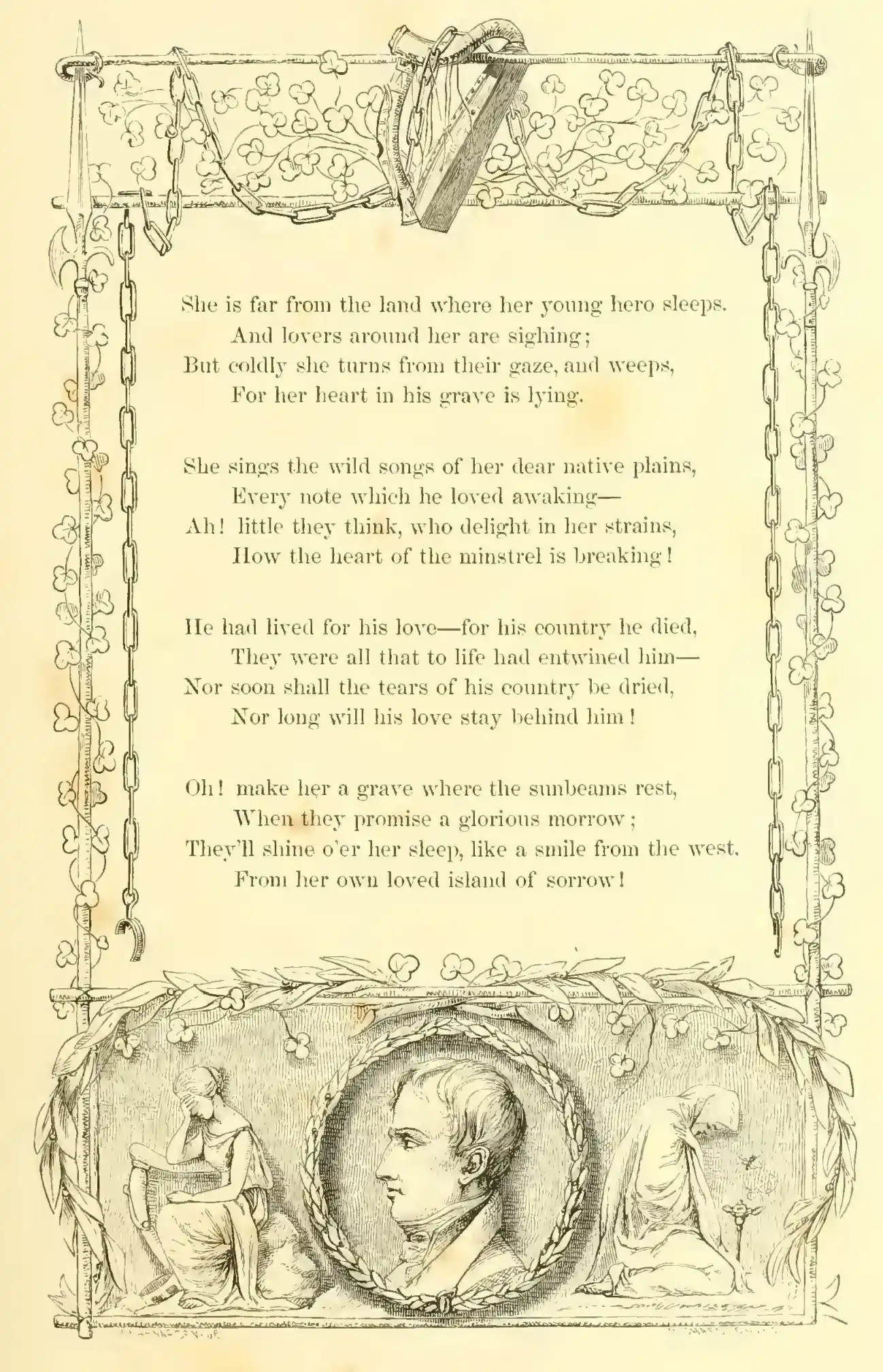 But Europe held forth all the charms of storied and poetical association. There were to be seen the masterpieces of art, the refinements of highly cultivated society, the quaint peculiarities of ancient and local custom. My native country was full of youthful promise; Europe was rich in the accumulated treasures of age. Her very ruins told the history of the times gone by, and every mouldering stone was a chronicle. I longed to wander over the scenes of renowned achievement—to tread, as it were, in the footsteps of antiquity—to loiter about the ruined castle—to meditate on the falling tower—to escape, in short, from the commonplace realities of the present, and lose myself among the shadowy grandeurs of the past.