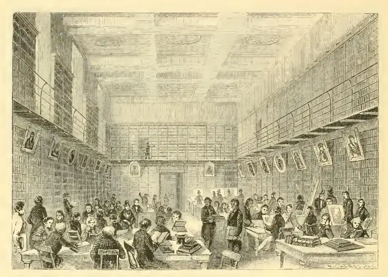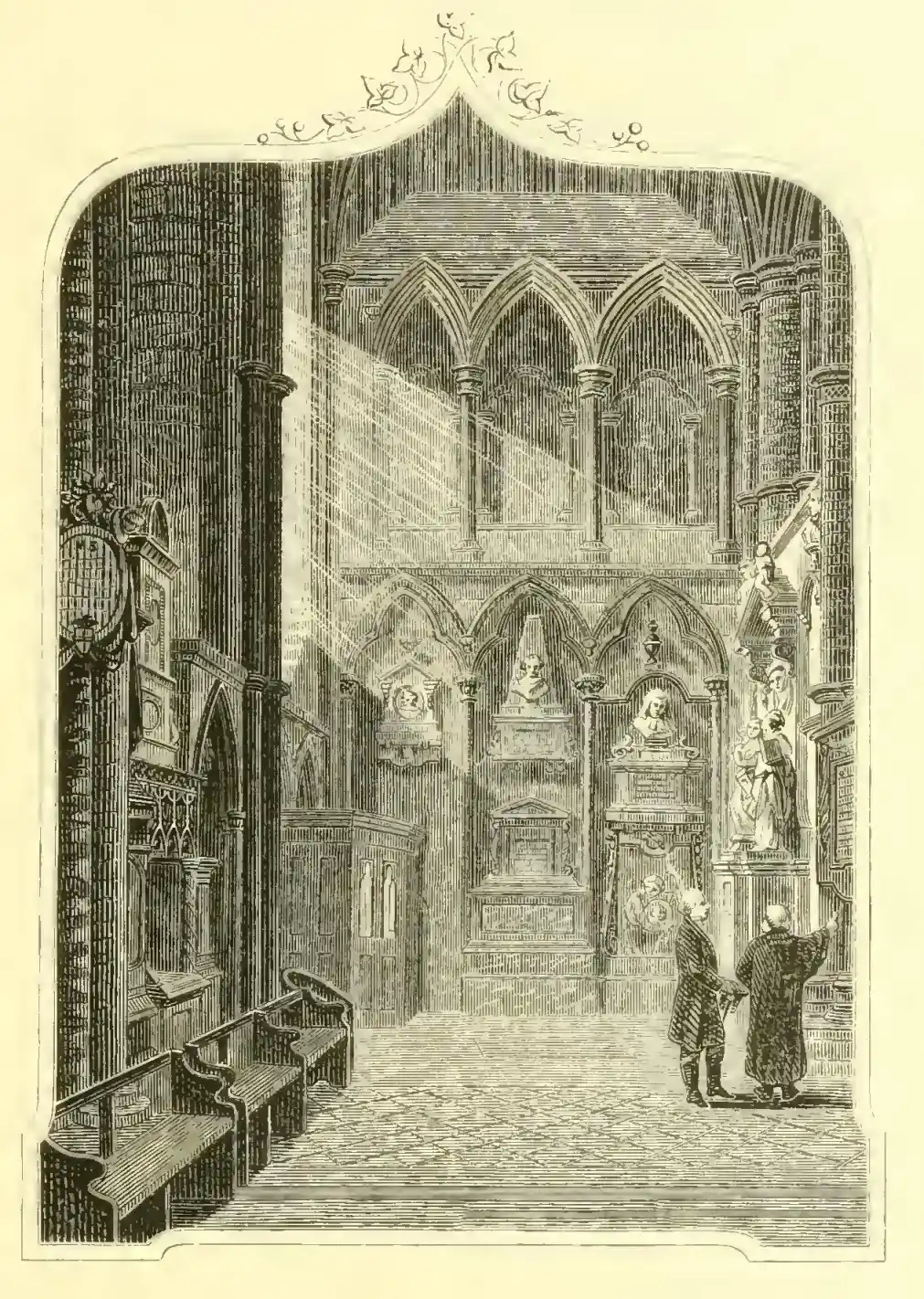As I was once visiting this haunt of the learned, my attention was attracted to a person just entering the room. He was advanced in life, tall, and of a form that might once have been commanding, but it was a little bowed by time—perhaps by care. He had a noble Roman style of countenance; a a head that would have pleased a painter; and though some slight furrows on his brow showed that wasting thought had been busy there, yet his eye beamed with the fire of a poetic soul. There was something in his whole appearance that indicated a being of a different order from the bustling race round him.