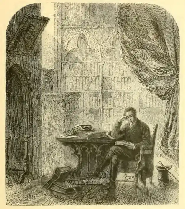 I inquired after the fate of Mr. Roscoe’s library, which had consisted of scarce and foreign books, from many of which he had drawn the materials for his Italian histories. It had passed under the hammer of the auctioneer, and was dispersed about the country. The good people of the vicinity thronged liked wreckers to get some part of the noble vessel that had been driven on shore. Did such a scene admit of ludicrous associations, we might imagine something whimsical in this strange irruption in the regions of learning. Pigmies rummaging the armory of a giant, and contending for the possession of weapons which they could not wield. We might picture to ourselves some knot of speculators, debating with calculating brow over the quaint binding and illuminated margin of an obsolete author; of the air of intense, but baffled sagacity, with which some successful purchaser attempted to dive into the black-letter bargain he had secured.
