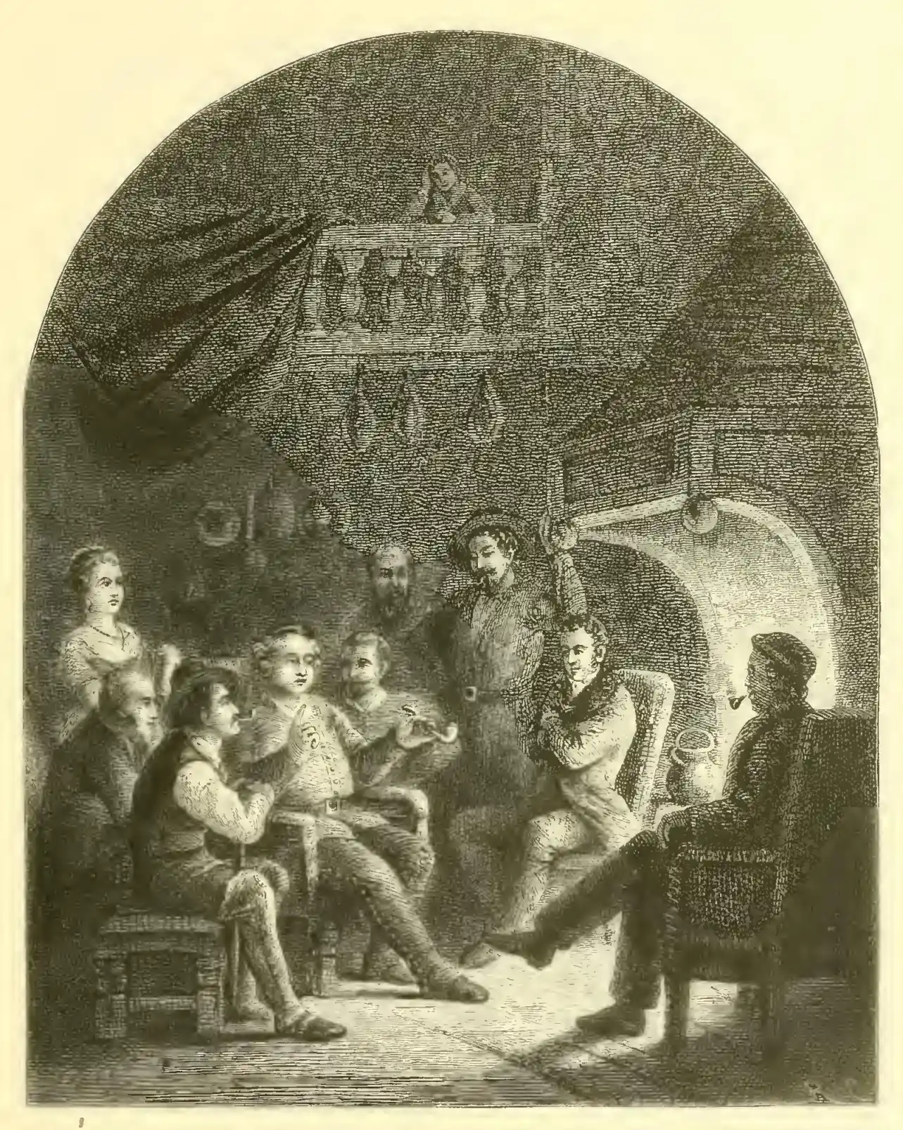 On inquiring further about him, I learnt that he was a universal favorite in the village and the oracle of the tap-room, where he delighted the rustics with his songs, and, like Sindbad, astonished them with his stories of strange lands and shipwrecks and sea-fights. He was much noticed too by gentlemen sportsmen of the neighborhood, had taught several of them the art of angling, and was a privileged visitor to their kitchens. The whole tenor of his life was quiet and inoffensive, being principally passed about the neighboring streams when the weather and season were favorable; and at other times he employed himself at home, preparing his fishing-tackle for the next campaign or manufacturing rods, nets, and flies for his patrons and pupils among the gentry.