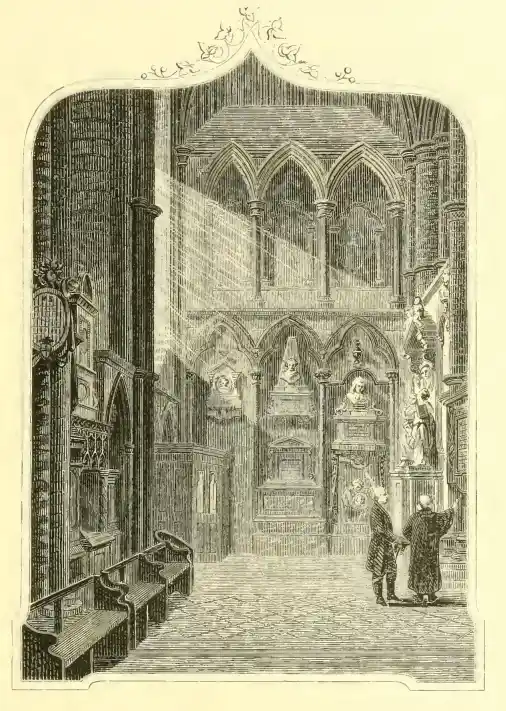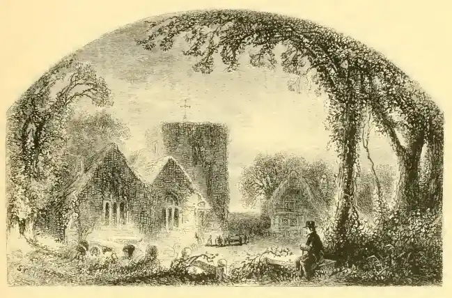 From that time, until the moment of arrival, it was all feverish excitement. The ships of war, that prowled like guardian giants along the coast; the headlands of Ireland, stretching out into the channel; the Welsh mountains towering into the clouds;—all were objects of intense interest. As we sailed up the Mersey, I reconnoitred the shores with a telescope. My eye dwelt with delight on neat cottages, with their trim shrubberies and green grass-plots. I saw the mouldering ruin of an abbey overrun with ivy, and the taper spire of a village church rising from the brow of a neighboring hill;—all were characteristic of England.