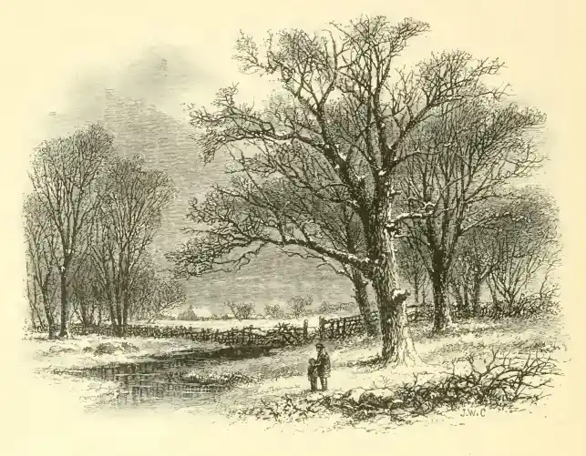 As Ichabod approached this fearful tree he began to whistle: he thought his whistle was answered; it was but a blast sweeping sharply through the dry branches. As he approached a little nearer he thought he saw something white hanging in the midst of the tree: he paused and ceased whistling, but on looking more narrowly perceived that it was a place where the tree had been scathed by lightning and the white wood laid bare. Suddenly he heard a groan: his teeth chattered and his knees smote against the saddle; it was but the rubbing of one huge bough upon another as they were swayed about by the breeze. He passed the tree in safety, but new perils lay before him.