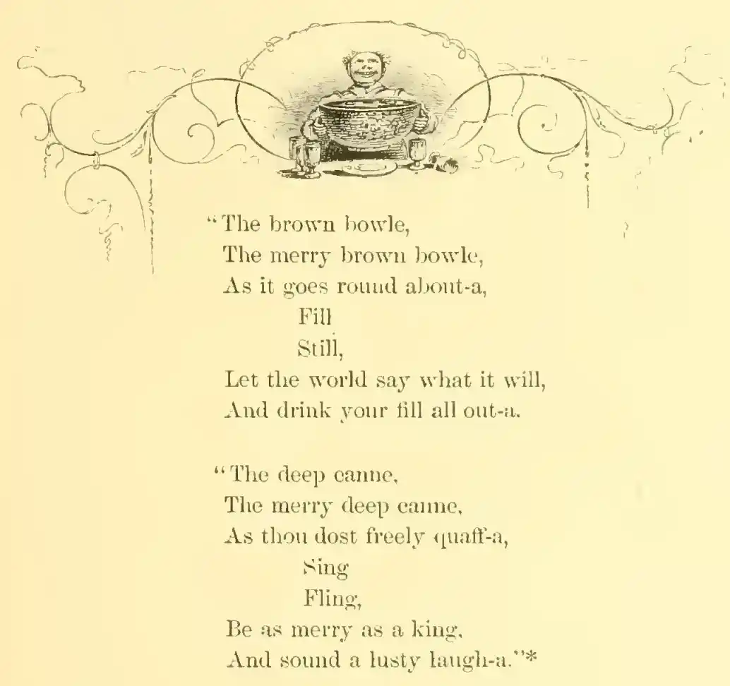 Thus perplexed by the advice of his friends, who each in turn closed some particular path, but left him all the world beside to range in, he found that to follow all their counsels would, in fact, be to stand still. He remained for a time sadly embarrassed, when all at once the thought struck him to ramble on as he had begun; that his work being miscellaneous and written for different humors, it could not be expected that any one would be pleased with the whole; but that if it should contain something to suit each reader, his end would be completely answered. Few guests sit down to a varied table with an equal appetite for every dish. One has an elegant horror of a roasted pig; another holds a curry or a devil in utter abomination; a third cannot tolerate the ancient flavor of venison and wild-fowl; and a fourth, of truly masculine stomach, looks with sovereign contempt on those knick-knacks here and there dished up for the ladies. Thus each article is in condemned in its turn, and yet amidst this variety of appetites seldom does a dish go away from the table without being tasted and relished by some one or other of the guests.