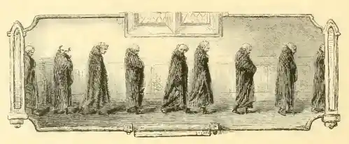 In addition to his other vocations, he was the singing-master of the neighborhood, and picked up many bright shillings by instructing the young folks in psalmody. It was a matter of no little vanity to him on Sundays to take his station in front of the church-gallery with a band of chosen singers, where, in his own mind, he completely carried away the palm from the parson. Certain it is, his voice resounded far above all the rest of the congregation, and there are peculiar quavers still to be heard in that church, and which may even be heard half a mile off, quite to the opposite side of the mill-pond on a still Sunday morning, which are said to be legitimately descended from the nose of Ichabod Crane. Thus, by divers little makeshifts in that ingenious way which is commonly denominated “by hook and by crook,” the worthy pedagogue got on tolerably enough, and was thought, by all who understood nothing of the labor of headwork, to have a wonderfully easy life of it.
