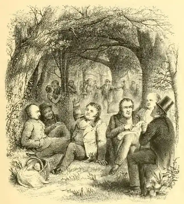 This was Roscoe’s favorite residence during the days of his prosperity. It had been the seat of elegant hospitality and literary retirement. The house was now silent and deserted. I saw the windows of the study, which looked out upon the soft scenery I have mentioned. The windows were closed—the library was gone. Two or three ill-favored beings were loitering about the place, whom my fancy pictured into retainers of the law. It was like visiting some classic fountain, that had once welled its pure waters in a sacred shade, but finding it dry and dusty, with the lizard and the toad brooding over the shattered marbles.