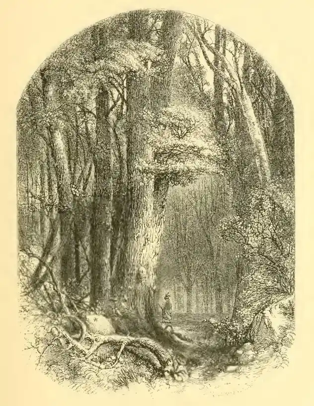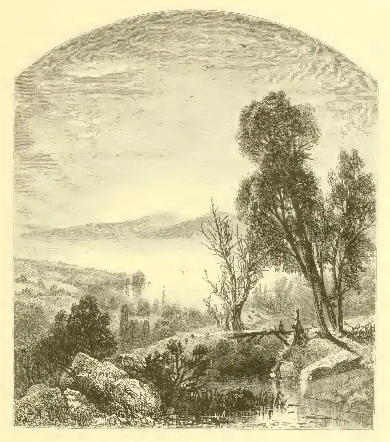 I recollect that when a stripling my first exploit in squirrel-shooting was in a grove of tall walnut trees that shades one side of the valley. I had wandered into it at noontime, when all Nature is peculiarly quiet, and was startled by the roar of my own gun as it broke the Sabbath stillness around and was prolonged and reverberated by the angry echoes. If ever I should wish for a retreat whither I might steal from the world and its distractions and dream quietly away the remnant of a troubled life, I know of none more promising than this little valley.
