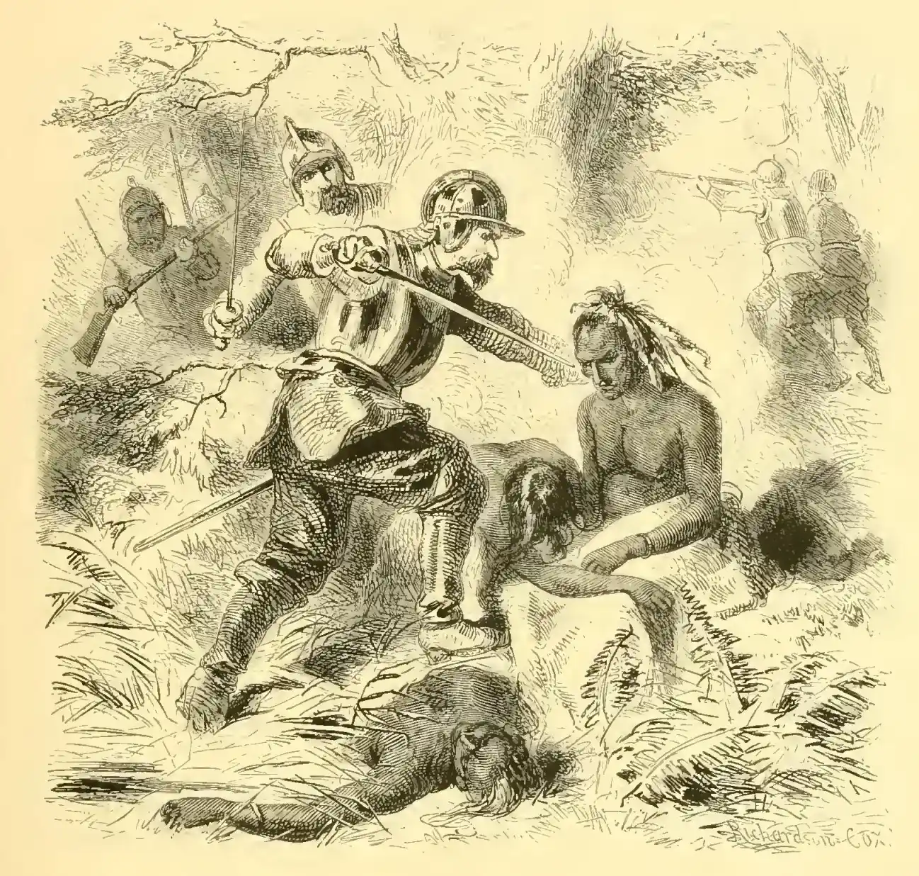 There was the story of Doffue Martling, a large blue-bearded Dutchman, who had nearly taken a British frigate with an old iron nine-pounder from a mud breastwork, only that his gun burst at the sixth discharge. And there was an old gentleman who shall be nameless, being too rich a mynheer to be lightly mentioned, who, in the battle of Whiteplains, being an excellent master of defence, parried a musket-ball with a small sword, insomuch that he absolutely felt it whiz round the blade and glance off at the hilt: in proof of which he was ready at any time to show the sword, with the hilt a little bent. There were several more that had been equally great in the field, not one of whom but was persuaded that he had a considerable hand in bringing the war to a happy termination.