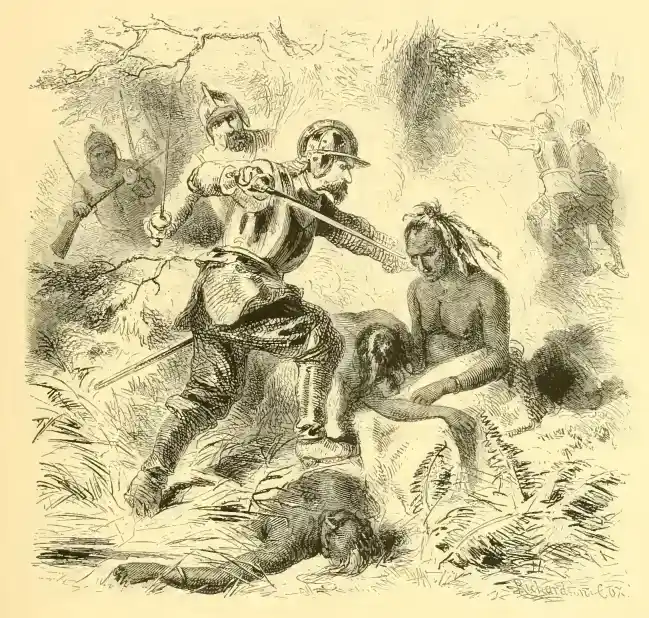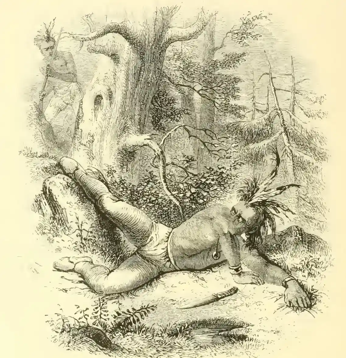 It was, as I have said, a fine autumnal day, the sky was clear and serene, and Nature wore that rich and golden livery which we always associate with the idea of abundance. The forests had put on their sober brown and yellow, while some trees of the tenderer kind had been nipped by the frosts into brilliant dyes of orange, purple, and scarlet. Streaming files of wild-ducks began to make their appearance high in the air; the bark of the squirrel might be heard from the groves of beech and hickory nuts, and the pensive whistle of the quail at intervals from the neighboring stubble-field.