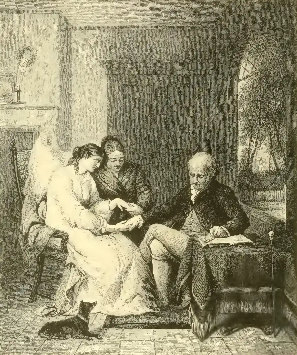 “And believe me, my friend,” said I, stepping up, and grasping him warmly by the hand, “believe me, she can be the same with you. Ay, more; it will be a source of pride and triumph to her—it will call forth all the latent energies and fervent sympathies of her nature; for she will rejoice to prove that she loves you for yourself. There is in every true woman’s heart a spark of heavenly fire, which lies dormant in the broad daylight of prosperity; but which kindles up, and beams, and blazes in the dark hour of adversity. No man knows what the wife of his bosom is—no man knows what a ministering angel she is—until he has gone with her through the fiery trials of this world.”