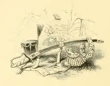 On parting with the old angler I inquired after his place of abode, and, happening to be in the neighborhood of the village a few evenings afterwards, I had the curiosity to seek him out. I found him living in a small cottage containing only one room, but a perfect curiosity in its method and arrangement. It was on the skirts of the village, on a green bank a little back from the road, with a small garden in front stocked with kitchen herbs and adorned with a few flowers. The whole front of the cottage was overrun with a honeysuckle. On the top was a ship for a weathercock. The interior was fitted up in a truly nautical style, his ideas of comfort and convenience having been acquired on the berth-deck of a man-of-war. A hammock was slung from the ceiling which in the daytime was lashed up so as to take but little room. From the centre of the chamber hung a model of a ship, of his own workmanship. Two or three chairs, a table, and a large sea-chest formed the principal movables. About the wall were stuck up naval ballads, such as “Admiral Hosier’s Ghost,” “All in the Downs,” and “Tom Bowling,” intermingled with pictures of sea-fights, among which the battle of Camperdown held a distinguished place. The mantelpiece was decorated with sea-shells, over which hung a quadrant, flanked by two wood-cuts of most bitter-looking naval commanders. His implements for angling were carefully disposed on nails and hooks about the room. On a shelf was arranged his library, containing a work on angling, much worn, a Bible covered with canvas, an odd volume or two of voyages, a nautical almanac, and a book of songs.