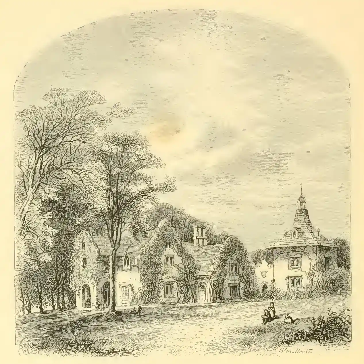 While my feelings were yet alive on the subject, it was my fortune to light on further traces of Mr. Roscoe. I was riding out with a gentleman, to view the environs of Liverpool, when he turned off, through a gate, into some ornamented grounds. After riding a short distance, we came to a spacious mansion of freestone, built in the Grecian style. It was not in the purest style, yet it had an air of elegance, and the situation was delightful. A fine lawn sloped away from it, studded with clumps of trees, so disposed as to break a soft fertile country into a variety of landscapes. The Mersey was seen winding a broad quiet sheet of water through an expanse of green meadow land, while the Welsh mountains, blended with clouds, and melting into distance, bordered the horizon.
