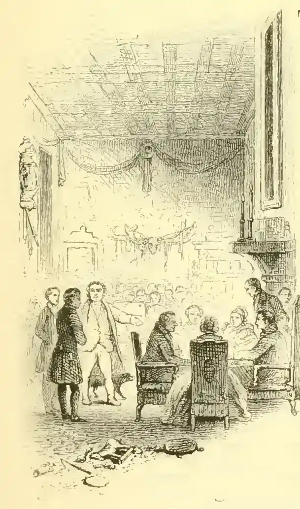 THE preceding tale is given almost in the precise words in which I heard it related at a Corporation meeting of the ancient city of Manhattoes, at which were present many of its sagest and most illustrious burghers. The narrator was a pleasant, shabby, gentlemanly old fellow in pepper-and-salt clothes, with a sadly humorous face, and one whom I strongly suspected of being poor, he made such efforts to be entertaining. When his story was concluded there was much laughter and approbation, particularly from two or three deputy aldermen who had been asleep the greater part of the time. There was, however, one tall, dry-looking old gentleman, with beetling eyebrows, who maintained a grave and rather severe face throughout, now and then folding his arms, inclining his head, and looking down upon the floor, as if turning a doubt over in his mind. He was one of your wary men, who never laugh but upon good grounds—when they have reason and the law on their side. When the mirth of the rest of the company had subsided and silence was restored, he leaned one arm on the elbow of his chair, and sticking the other akimbo, demanded, with a slight but exceedingly sage motion of the head and contraction of the brow, what was the moral of the story and what it went to prove.