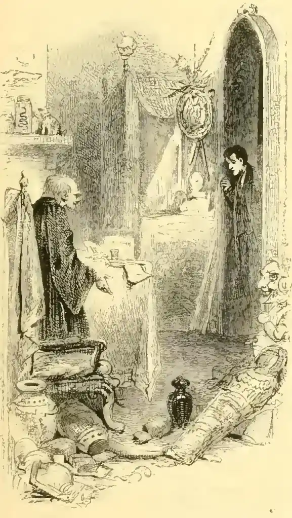 The cautious old gentleman knit his brows tenfold closer after this explanation, being sorely puzzled by the ratiocination of the syllogism, while methought the one in pepper-and-salt eyed him with something of a triumphant leer. At length he observed that all this was very well, but still he thought the story a little on the extravagant—there were one or two points on which he had his doubts.