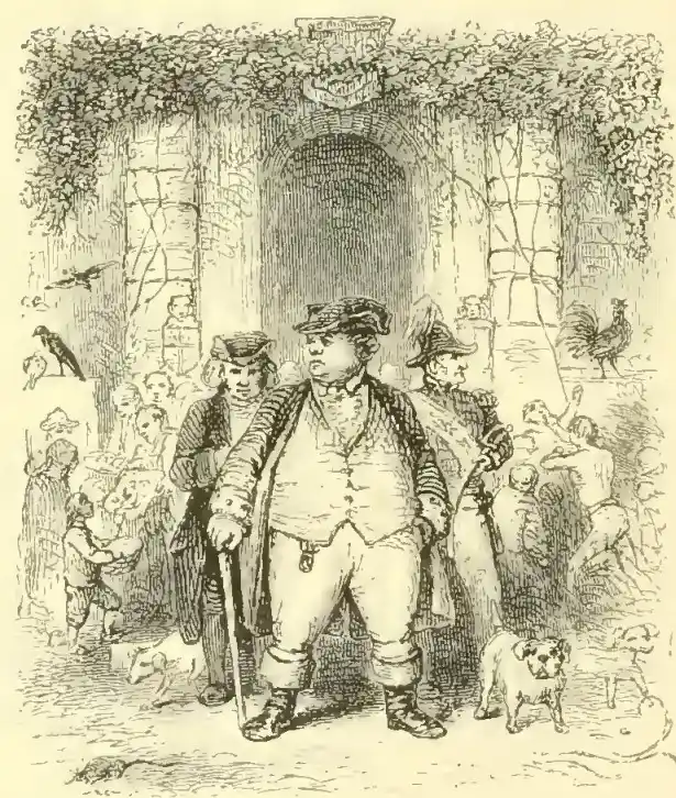 Ichabod Crane had a soft and foolish heart towards the sex, and it is not to be wondered at that so tempting a morsel soon found favor in his eyes, more especially after he had visited her in her paternal mansion. Old Baltus Van Tassel was a perfect picture of a thriving, contented, liberal-hearted farmer. He seldom, it is true, sent either his eyes or his thoughts beyond the boundaries of his own farm, but within those everything was snug, happy, and well-conditioned. He was satisfied with his wealth but not proud of it, and piqued himself upon the hearty abundance, rather than the style, in which he lived. His stronghold was situated on the banks of the Hudson, in one of those green, sheltered, fertile nooks in which the Dutch farmers are so fond of nestling. A great elm tree spread its broad branches over it, at the foot of which bubbled up a spring of the softest and sweetest water in a little well formed of a barrel, and then stole sparkling away through the grass to a neighboring brook that bubbled along among alders and dwarf willows. Hard by the farmhouse was a vast barn, that might have served for a church, every window and crevice of which seemed bursting forth with the treasures of the farm; the flail was busily resounding within it from morning to night; swallows and martins skimmed twittering about the eaves; and rows of pigeons, some with one eye turned up, as if watching the weather, some with their heads under their wings or buried in their bosoms, and others, swelling, and cooing, and bowing about their dames, were enjoying the sunshine on the roof. Sleek, unwieldy porkers were grunting in the repose and abundance of their pens, whence sallied forth, now and then, troops of sucking pigs as if to snuff the air. A stately squadron of snowy geese were riding in an adjoining pond, convoying whole fleets of ducks; regiments of turkeys were gobbling through the farmyard, and guinea-fowls fretting about it, like ill-tempered housewives, with their peevish, discontented cry. Before the barn-door strutted the gallant cock, that pattern of a husband, a warrior, and a fine gentleman, clapping his burnished wings and crowing in the pride and gladness of his heart—sometimes tearing up the earth with his feet, and then generously calling his ever-hungry family of wives and children to enjoy the rich morsel which he had discovered.