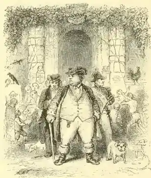 Among these the most formidable was a burly, roaring, roistering blade of the name of Abraham—or, according to the Dutch abbreviation, Brom—Van Brunt, the hero of the country round, which rang with his feats of strength and hardihood. He was broad-shouldered and double-jointed, with short curly black hair and a bluff but not unpleasant countenance, having a mingled air of fun and arrogance. From his Herculean frame and great powers of limb, he had received the nickname of BROM BONES, by which he was universally known. He was famed for great knowledge and skill in horsemanship, being as dexterous on horseback as a Tartar. He was foremost at all races and cockfights, and, with the ascendancy which bodily strength acquires in rustic life, was the umpire in all disputes, setting his hat on one side and giving his decisions with an air and tone admitting of no gainsay or appeal. He was always ready for either a fight or a frolic, but had more mischief than ill-will in his composition; and with all his overbearing roughness there was a strong dash of waggish good-humor at bottom. He had three or four boon companions who regarded him as their model, and at the head of whom he scoured the country, attending every scene of feud or merriment for miles around. In cold weather he was distinguished by a fur cap surmounted with a flaunting fox’s tail; and when the folks at a country gathering descried this well-known crest at a distance, whisking about among a squad of hard riders, they always stood by for a squall. Sometimes his crew would be heard dashing along past the farm-houses at midnight with whoop and halloo, like a troop of Don Cossacks, and the old dames, startled out of their sleep, would listen for a moment till the hurry-scurry had clattered by, and then exclaim, “Ay, there goes Brom Bones and his gang!” The neighbors looked upon him with a mixture of awe, admiration, and good-will, and when any madcap prank or rustic brawl occurred in the vicinity always shook their heads and warranted Brom Bones was at the bottom of it.