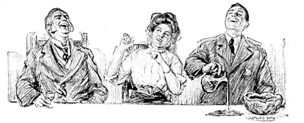 The Bridegroom. Thanks.... Oh, thanks.... Thanks awf'lly.... Thanks awf'lly.... Thanks awf'lly.... Oh, thanks awf'lly ... (with a brilliant burst of invention, amounting almost to genius) Thanks frightfully.[345]