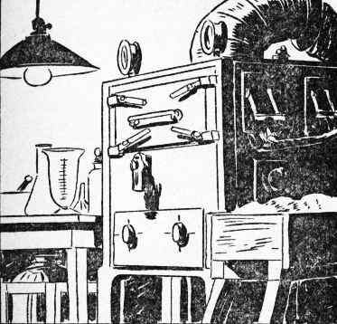 The next few days Tom was so busy that he gave only an occasional thought to his loss. Analysis of the sample cut from the meteorite showed that it was even richer than he had hoped in the new substance, X. Immediately he telegraphed a large science supply house for huge flasks, beakers, retorts and other paraphernalia necessary to extract and refine the material.