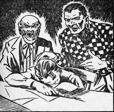 In a few minutes Tom's feeling was proven correct, for the formula dealing with the flexible glass was gone! Koku, when questioned, admitted that he had seen some papers drop from Anton's pocket when he had seized him just outside the laboratory, but the simple giant had paid no attention to them. There followed a frantic search with a flashlight by Tom but there was no trace of the missing documents.