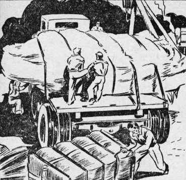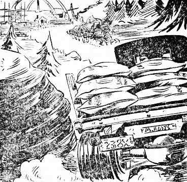 At last the time arrived when the great disk was wrapped in hundreds of bales of cotton, suspended on racks and loaded onto the great truck. Tom insisted upon riding with his precious creation. The rest of his party, including his father, Ned Newton, Mr. Damon, Professor Standish, Koku and Rad, traveled by train to the foot of the mountain.
