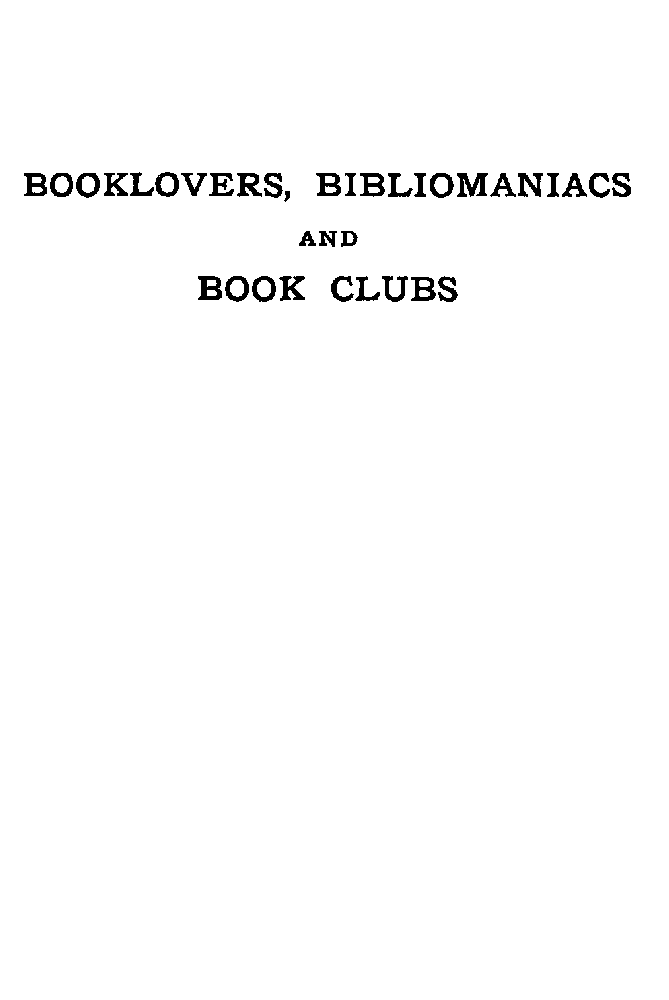 Title: Book-Lovers, Bibliomaniacs and Book Clubs