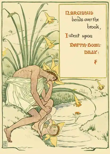 NARCISSUS bends over the brook,