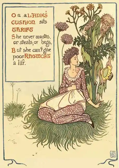 On a LADIES' CUSHION sits THRIFT
