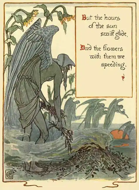 When Time's in the garden weeding.