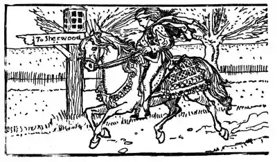 "This superb book is unquestionably the most original and elaborate ever produced by any American artist. Mr. Pyle has told, with pencil and pen, the complete and consecutive story of Robin Hood and his merry men in their haunts in Sherwood Forest, gathered from the old ballads and legends. Mr. Pyle's admirable illustrations are strewn profusely through the book." —Boston Transcript. [Pg 99]