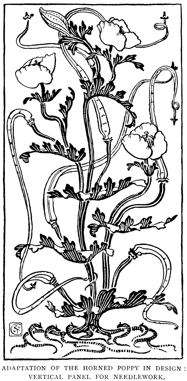 | Adaptation of Horned Poppy in Design: Vertical Panel for Needlework | f023 |