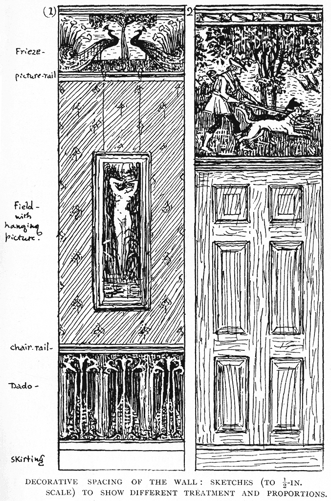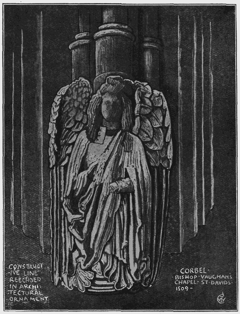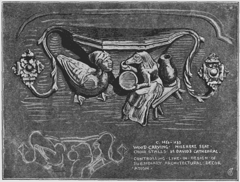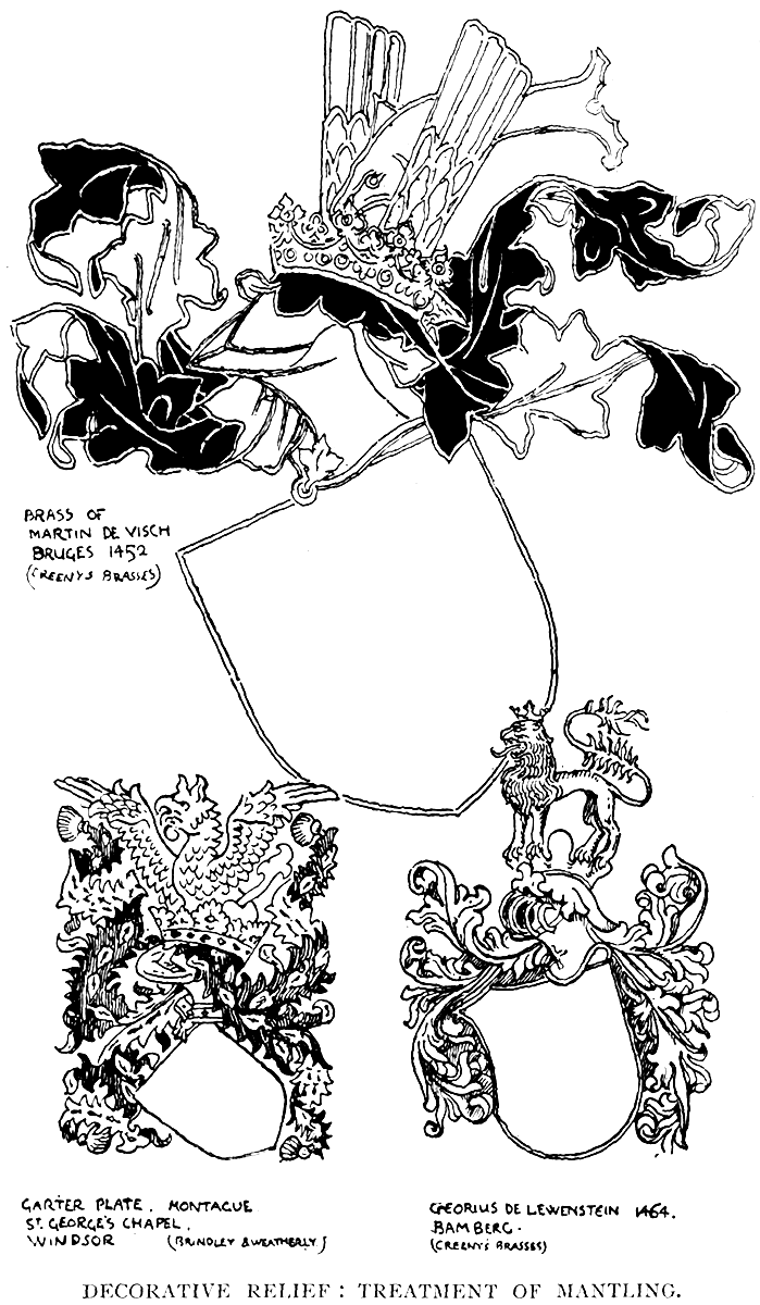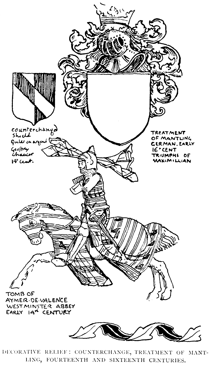 This after all is the principle to cling to in all designing, to adapt our designs to the particular distinctive character and beauty of the material for which they are destined, to endeavour to think them out in those materials, and not only on paper. Whatever the work may be—carving, inlays, modelling, mosaic, textiles—through the whole range of surface decoration, we should think out our designs, not only in relation to the limitations of their material, but also in their relation to each other, to their effect in actual use, and even to their possible use in association [255]together, which, of course, is of paramount importance in designing a complete room or any comprehensive piece of decoration.