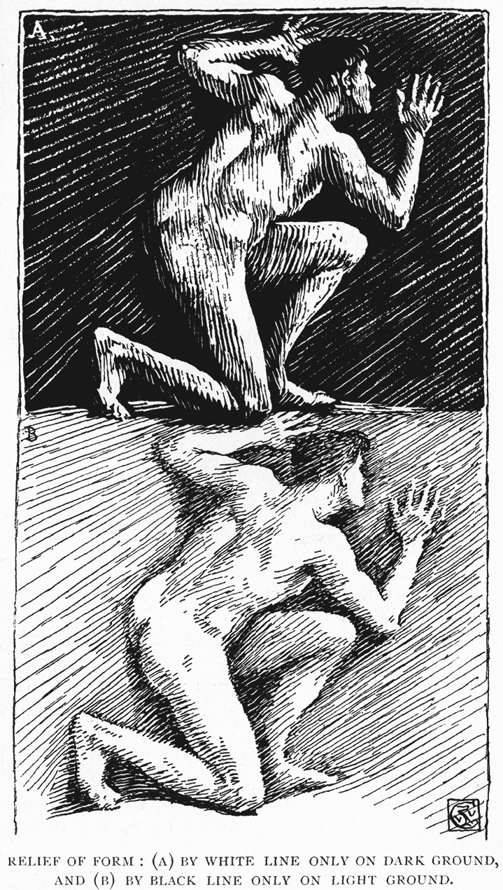 Our earliest ideas of form are probably derived through the different colours of objects around us, by which they are thrown into relief upon the background, or against other objects; and, as I mentioned in the first chapter, we reach outline by observing the edges of different masses relieved as dark or light upon light or dark grounds, so now, in my last, we come again to the consideration of the definition of line and form by colour, and their relief and expression upon different planes or fields of colour.