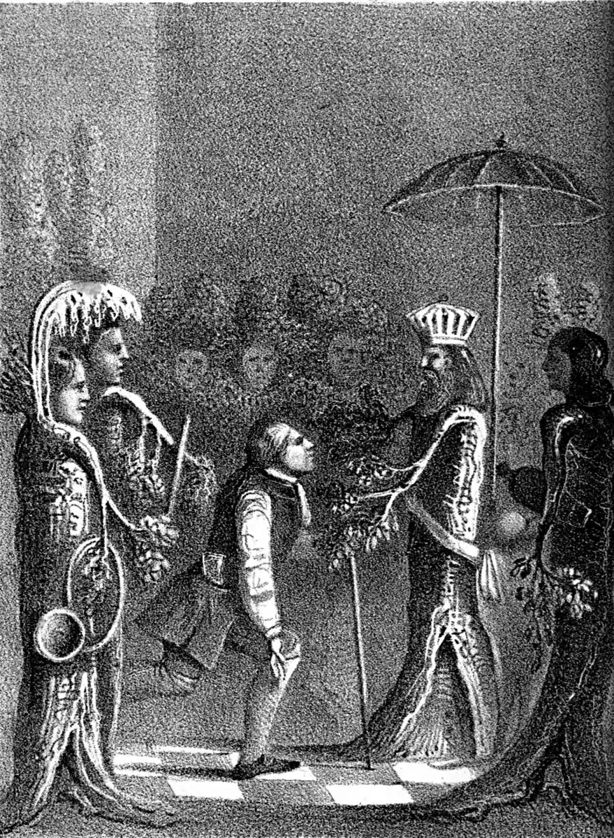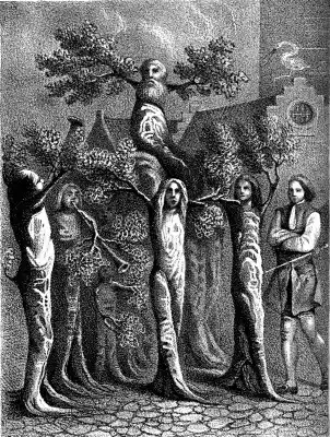 In my present condition, I was far from being able to conceive of the nature of sensible, speaking trees. In truth, so confounded was I, that I forgot I could speak myself. As little could I understand the meaning of the slow, solemn procession, and the confused murmurs which resounded in the air.[13]