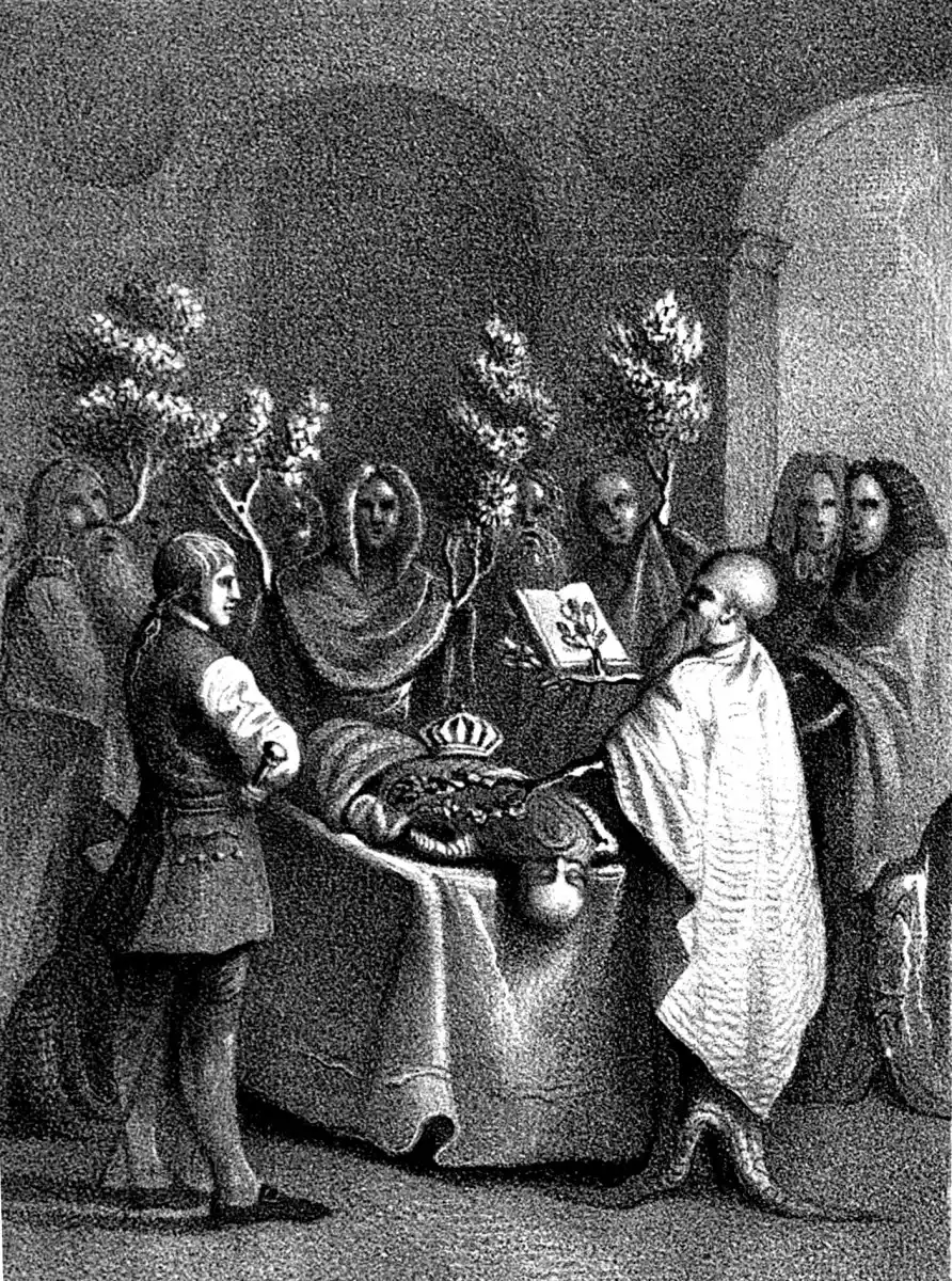 The occasion was this: the empress, whom I left in pregnancy during my last expedition, had in my absence been delivered of a son. This prince I wished to have nominated as my successor. I therefore summoned a Diet, and commanded the Quamitian nobles and the great men among the conquered nations, to meet in the capital, at the crowning of the child. None dared to disobey this proclamation, and the coronation passed off with great magnificence; but I observed by the countenances of my sub[174]jects, that their joy was dissembled. I became more confirmed in my mistrust, when I learnt that a multitude of libels had been spread about. These libels, by unknown authors, criticised me very severely, and asserted that prince Timuso was insulted in the choice of my son. This enraged me so much that I could not rest until that noble and excellent prince should be removed from my path. I therefore suborned some persons to accuse him of treason; and since rulers seldom want assistants, when they would commit crimes, I was quickly enabled to prove that Timuso had attempted my life. I had him sentenced to death by bribed judges, and then threw him into prison, where he was privately murdered; for I feared to excite a rebellion by a public execution. I had determined to murder the younger prince likewise; but postponed it. His youth procured for him the safety, which neither my justice nor humanity would have granted him. Having once imbued my hands in innocent blood, my cruelty and moroseness knew no bounds. I doomed to death several whole families, whose loyalty I merely suspected. Not a day passed[175] without bloodshed. I defiled my soul with the blood of innocence, virtue and nobleness. All these things hastened a rebellion, excited by the nobles, who had been long disgusted with me.