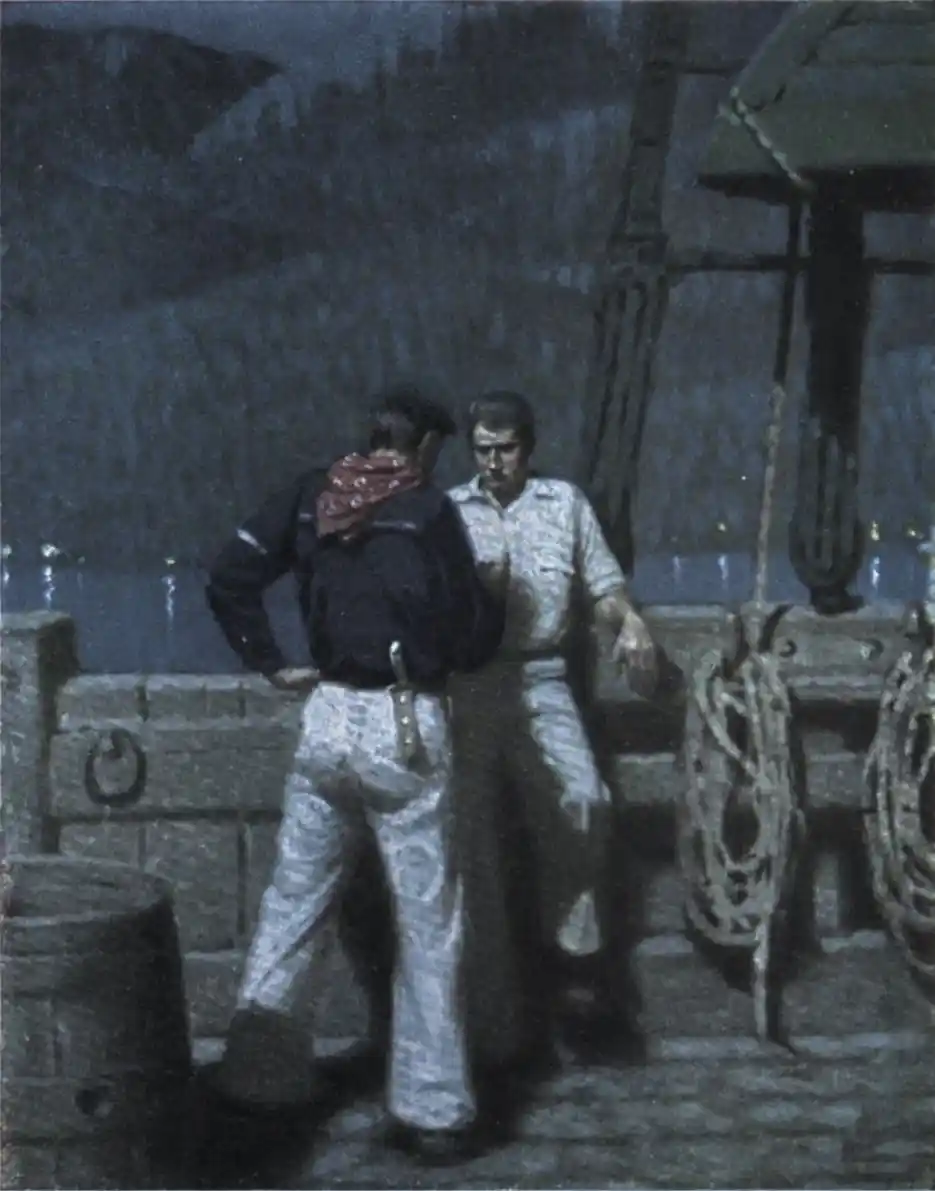 The old rover now began to reveal his true character, though he was hardly suspected at the time. “If I get you off to a ship,” said he, “you will surely give a poor fellow something for saving you.” In short, before they left the house, he made Toby promise that he would give him five Spanish dollars if he succeeded in getting any part of his wages advanced from the vessel, aboard of which they were going; Toby, moreover, engaging to reward him still farther, as soon as my deliverance was accomplished.