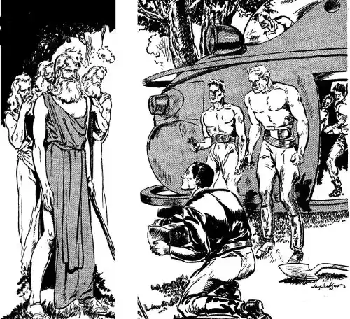 "The colonists landed on earth thousands of years ago," Ron Val said. "Maybe they smashed their ship in landing, had to learn to live off the country. Maybe they forgot who they were, in time. Jed, we have legends that we are the children of God. Maybe—Oh, Jed, Thulon says it's true."