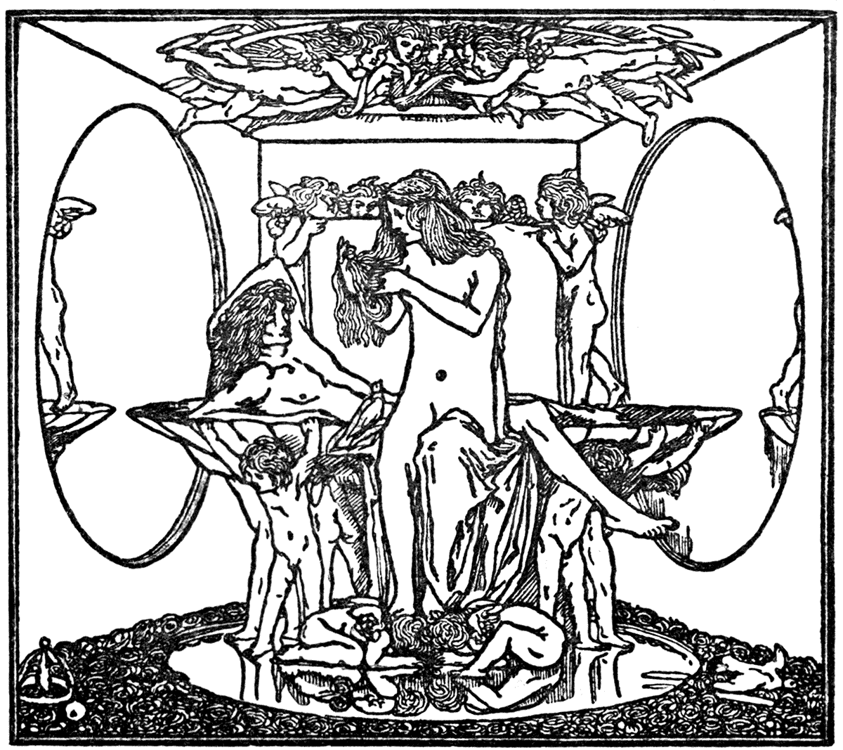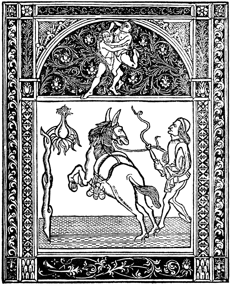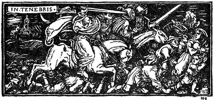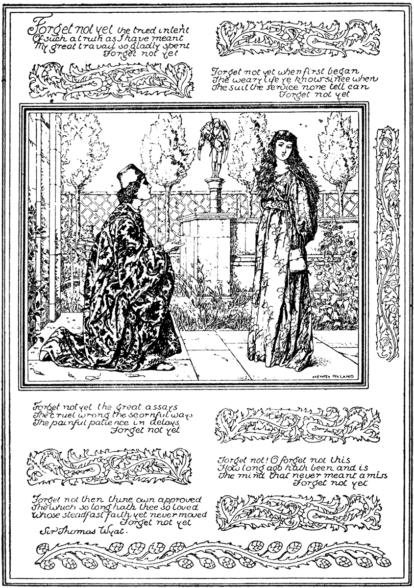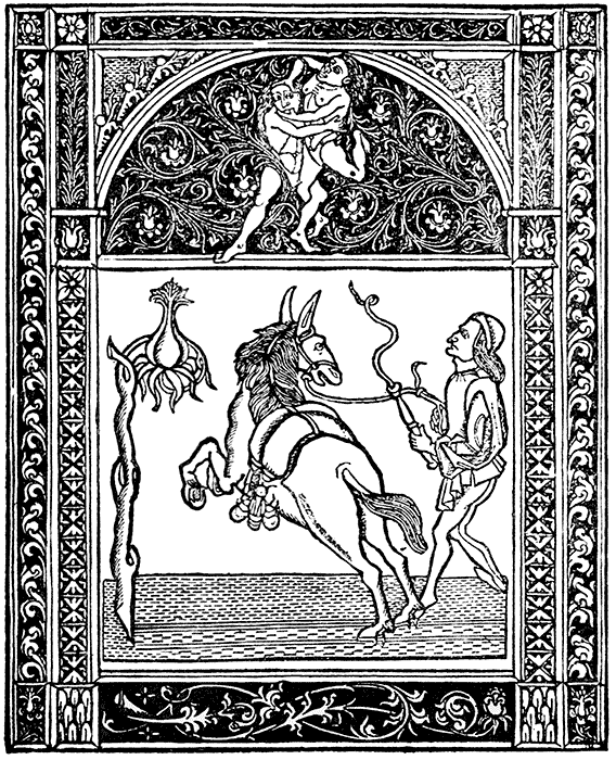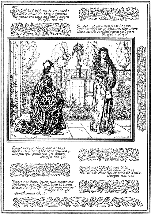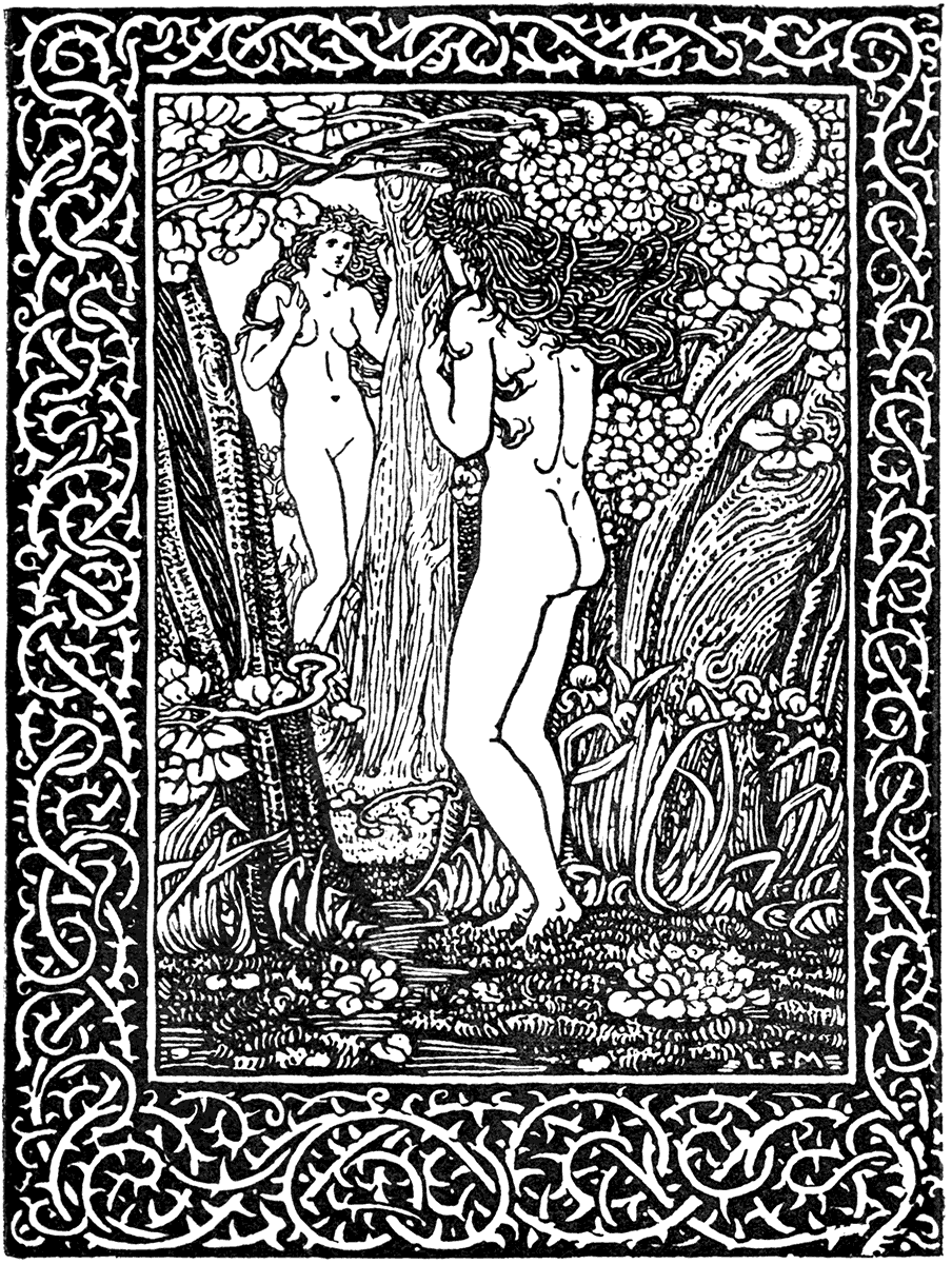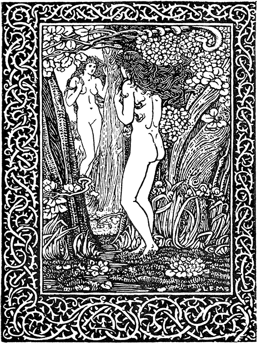 In the selection of the illustrations, I have endeavoured to draw the line between the purely graphic aim, on the one hand, and the ornamental aim on the other—between what I should term the art of pictorial statement and the art of decorative treatment; though there are many cases in which they are combined, as, indeed, in all the most complete book-pictures, they should be. My purpose has been to treat of illustrations which are also book-ornaments, so that purely graphic design, as such, unrelated to the type, and the conditions of the page, does not come within my scope.