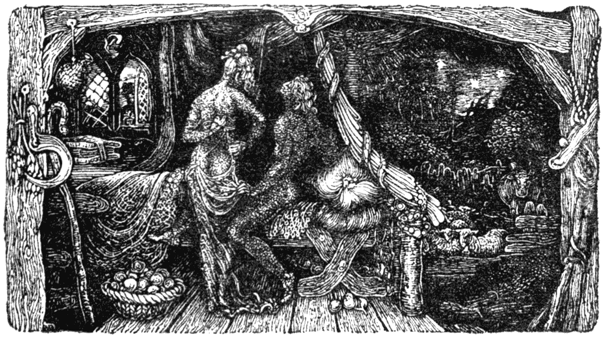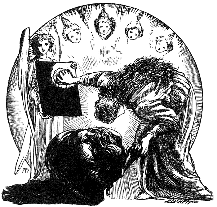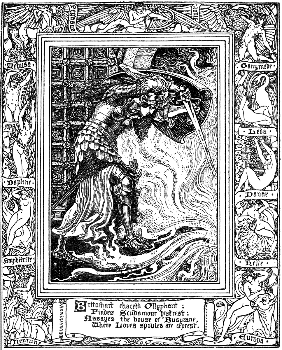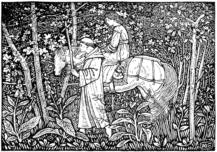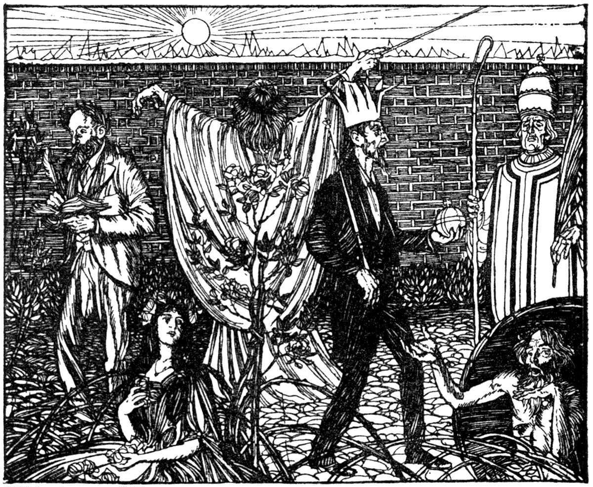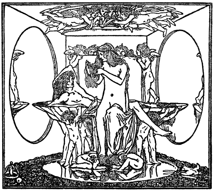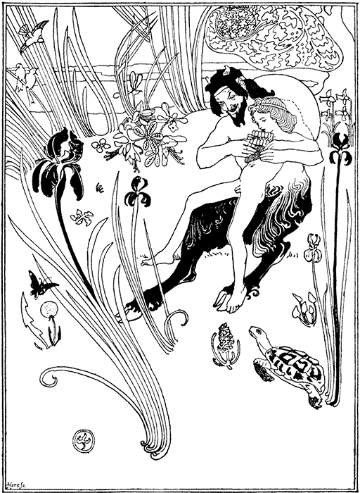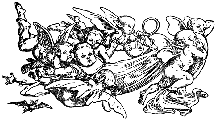 In the selection of the illustrations, I have endeavoured to draw the line between the purely graphic aim, on the one hand, and the ornamental aim on the other—between what I should term the art of pictorial statement and the art of decorative treatment; though there are many cases in which they are combined, as, indeed, in all the most complete book-pictures, they should be. My purpose has been to treat of illustrations which are also book-ornaments, so that purely graphic design, as such, unrelated to the type, and the conditions of the page, does not come within my scope.