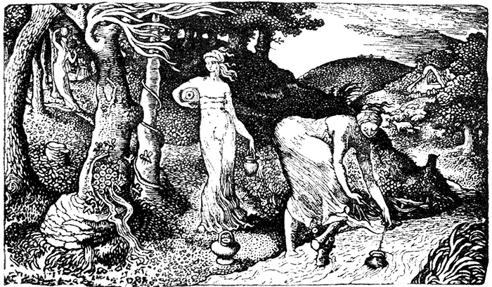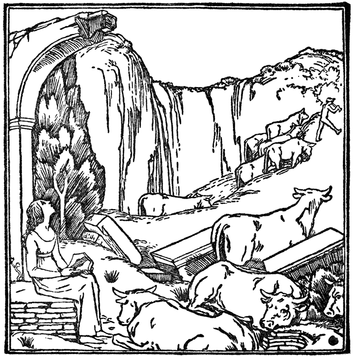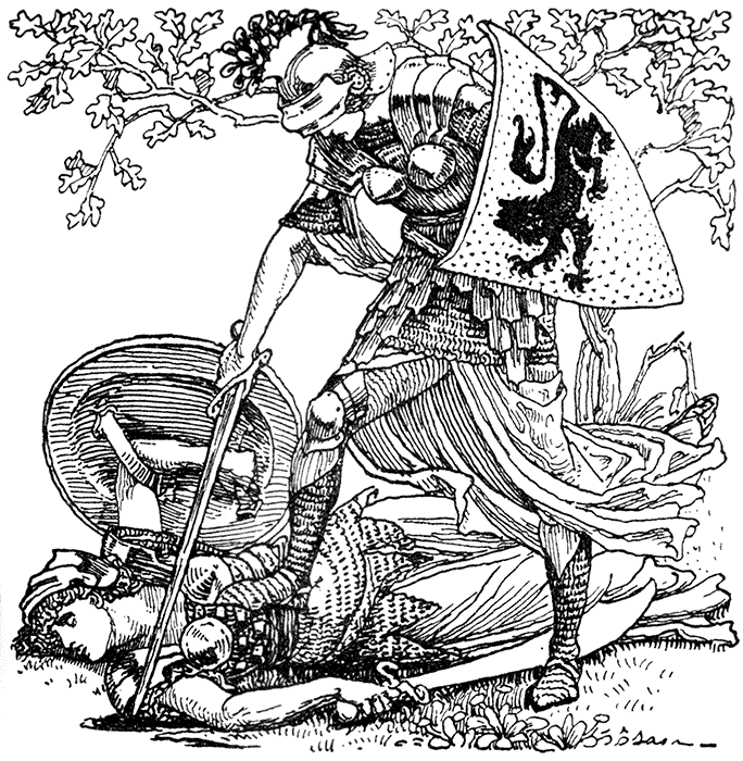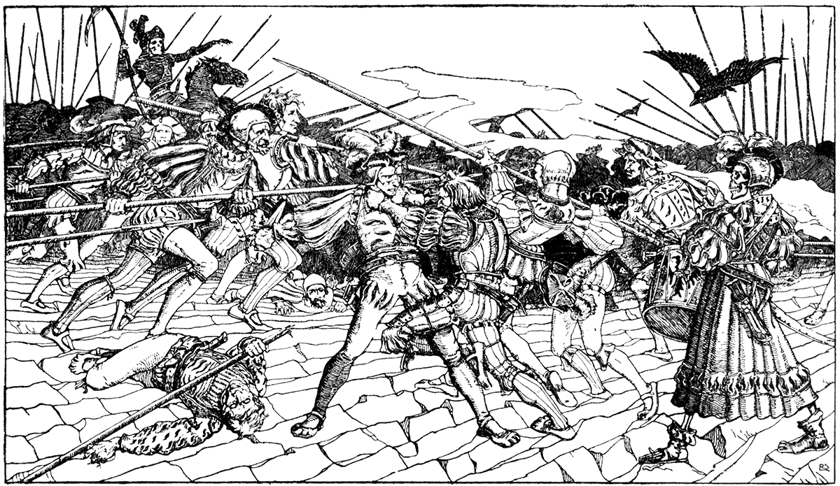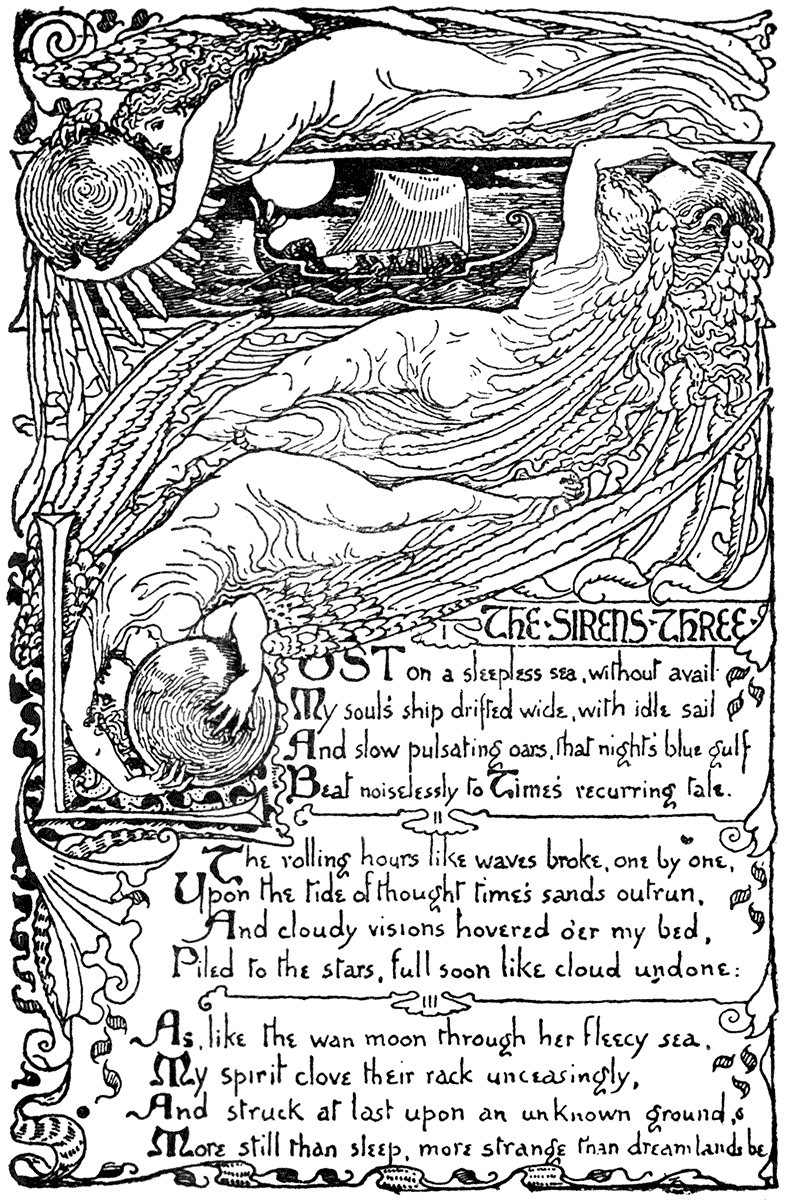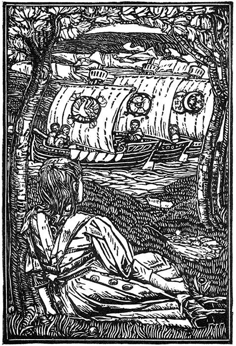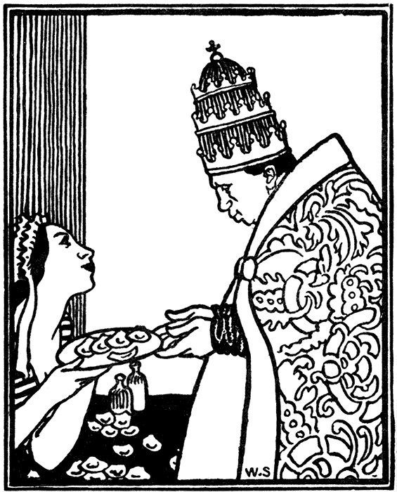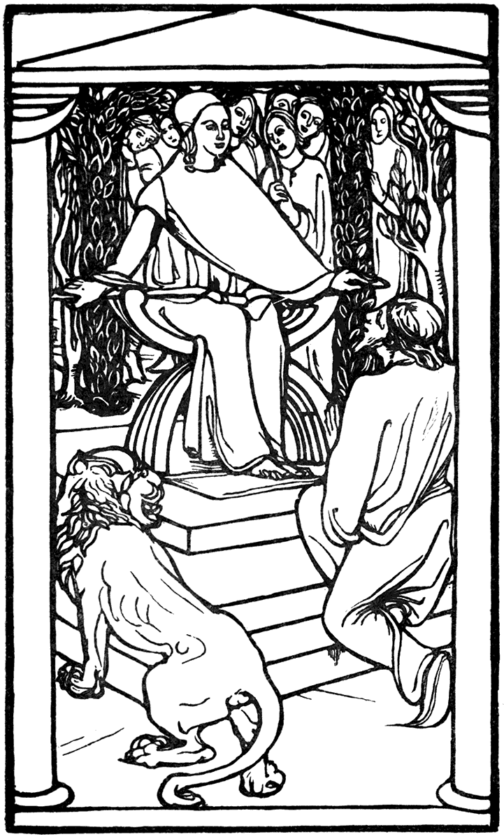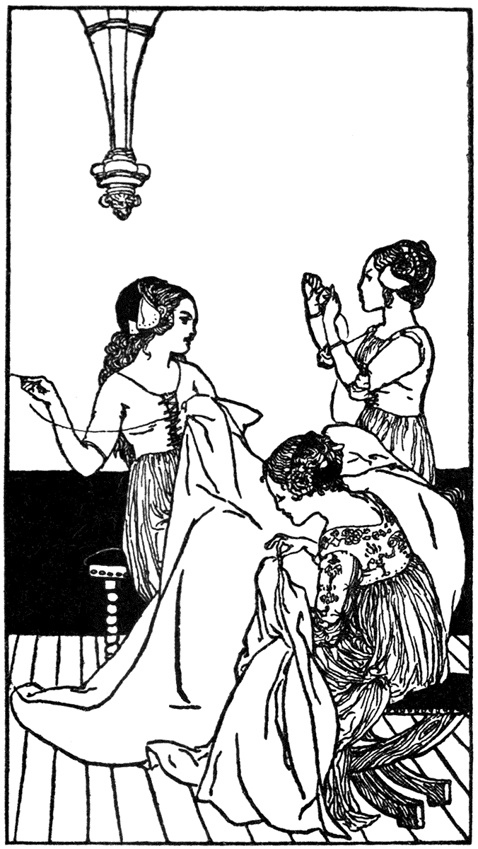In the selection of the illustrations, I have endeavoured to draw the line between the purely graphic aim, on the one hand, and the ornamental aim on the other—between what I should term the art of pictorial statement and the art of decorative treatment; though there are many cases in which they are combined, as, indeed, in all the most complete book-pictures, they should be. My purpose has been to treat of illustrations which are also book-ornaments, so that purely graphic design, as such, unrelated to the type, and the conditions of the page, does not come within my scope.