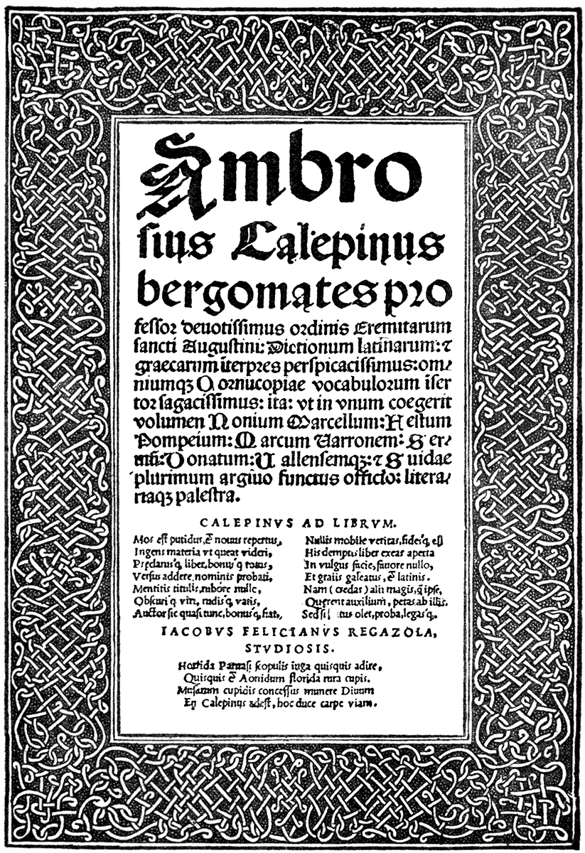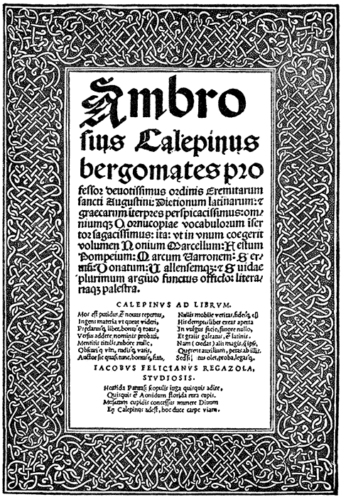 | Ambrosius Calepinus. (Tosculano, 1520) | 121 | |