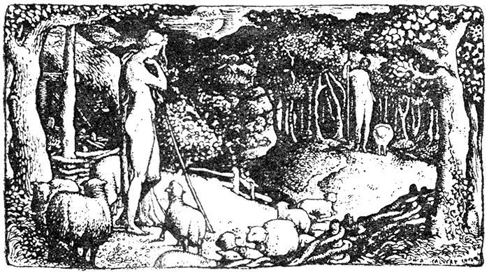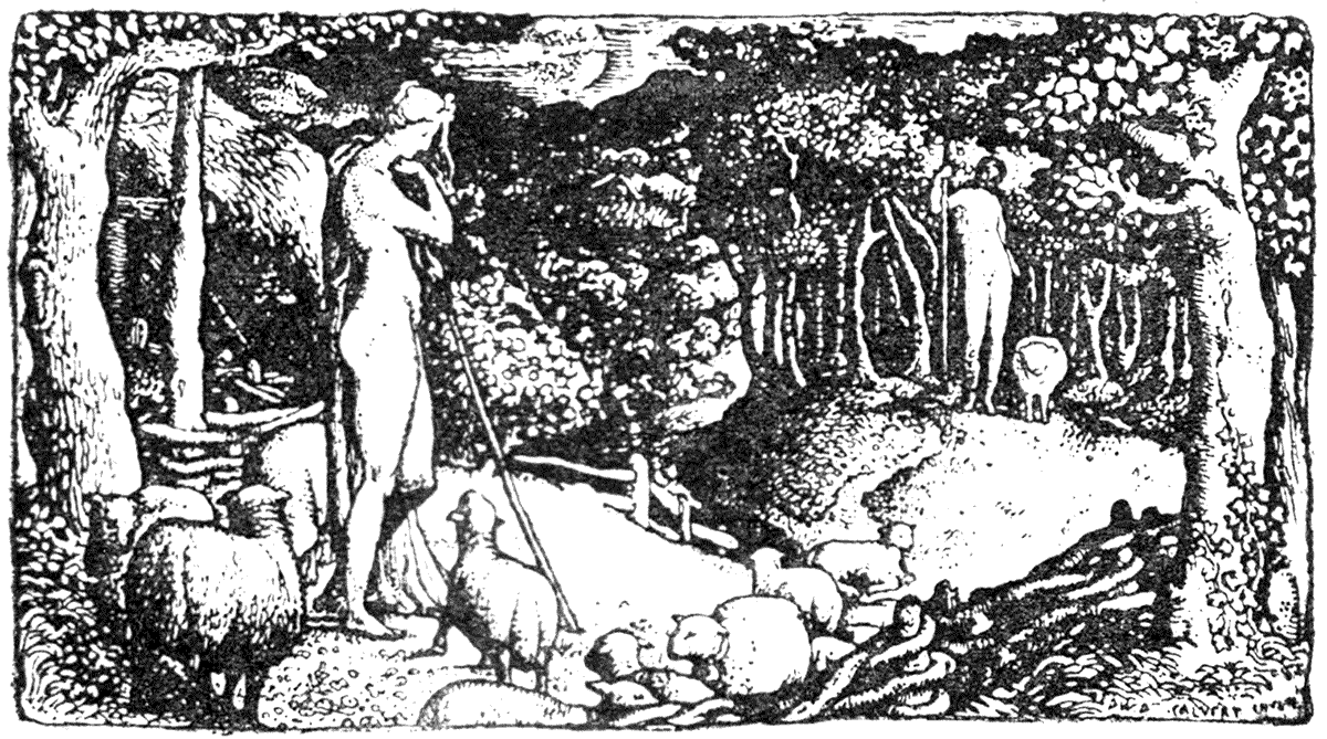 | Edward Calvert: Original Woodcuts: "The Lady and the Rooks," "The Return Home," "Chamber Idyll," "The Flood," "Ideal Pastoral Life," "The Brook," 1827-29 | 141, 143 | |
